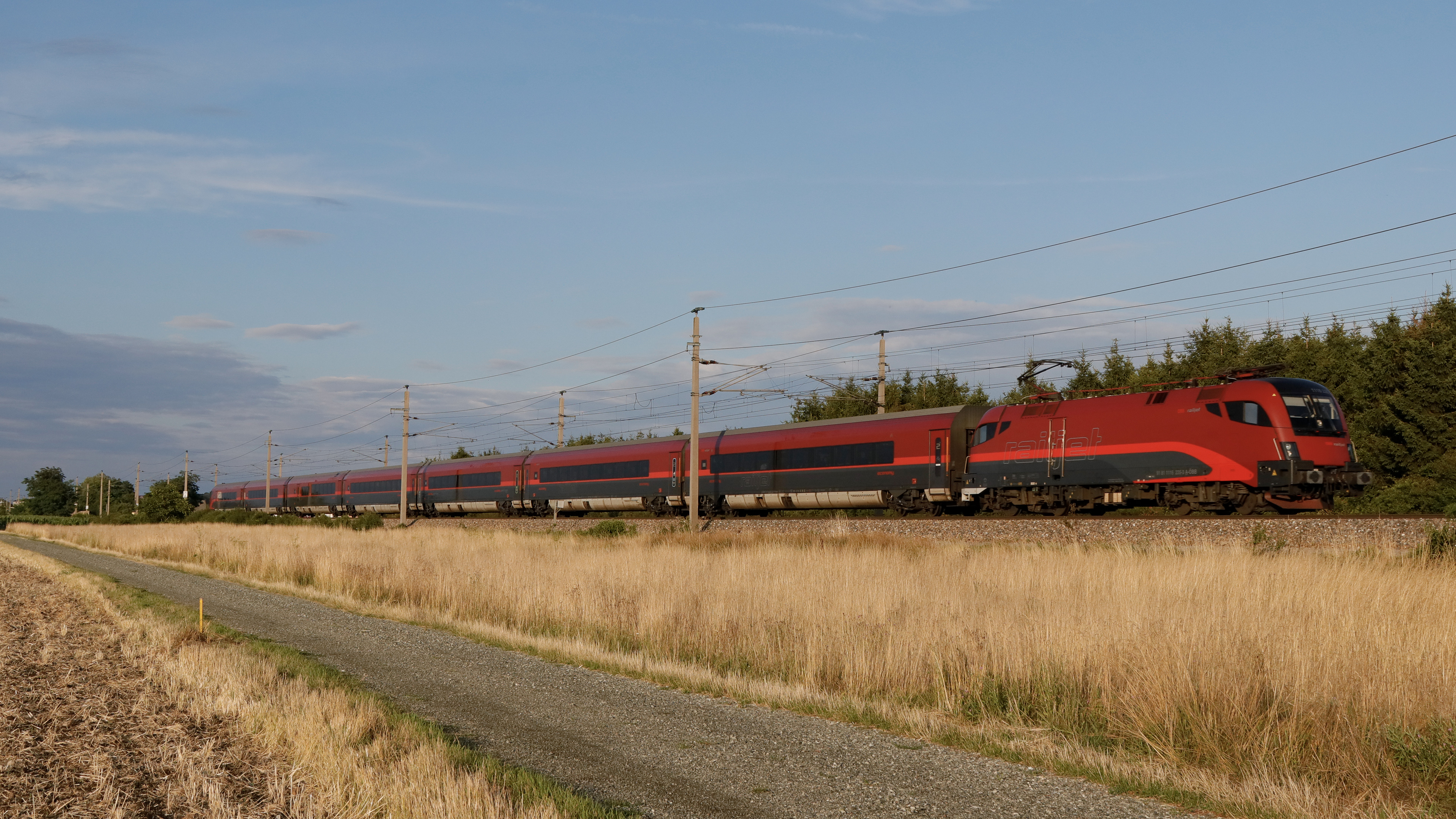 Descrizione: Railjet affidato alla trazione della 1116 235, in transito poco dopo Markersdorf/Pielach, diretto a Salisburgo.