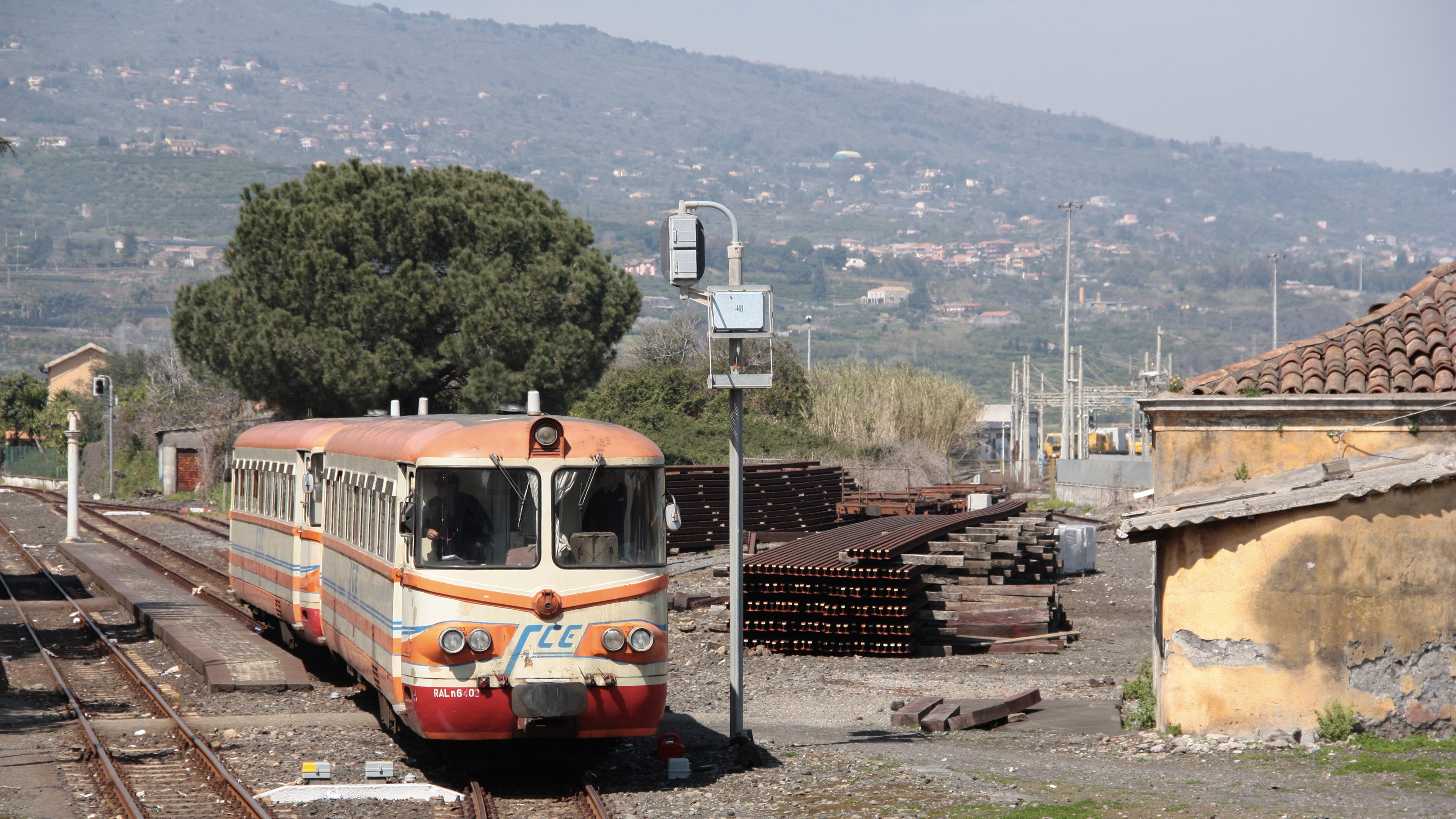 Descrizione: Treno da Randazzo a Riposto effettuato con due RALn64,in testa l'unità 02 e in coda la 04, ancora in arancione.