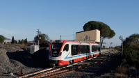 Descrizione: Transito lungo il celeberrimo tratto di linea ricoperto dalla lava del 1990, per la ADe14 mentre effettua un treno da LInguaglossa a Randazzo.